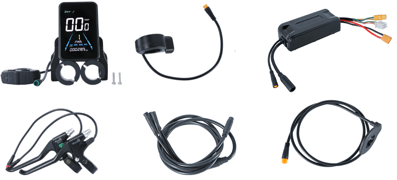 A 1500w-2000w powerful motor wheel, 48V 35Amp FOC sinewave smart controller, LCD81F TFT color display, V12 PAS, Thumb throttle, e-Brake levers, 1T4 waterproof quick-release harness wires and a good package with foam to protect all parts be safe.